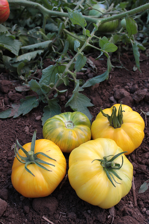 Heirloom Tomatoes Portrait By ISED Solutions / April 4, 2025 Group of striped heirloom tomatoes on dark soil background.