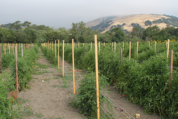 Trellised Tomato Field using Florida Weave By ISED Solutions / April 4, 2025 Field of tomatoes trellised using the Florida Weave technique.