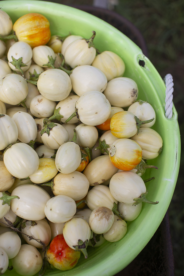 African eggplant aka “garden egg” in a quart container ready to be sold at market