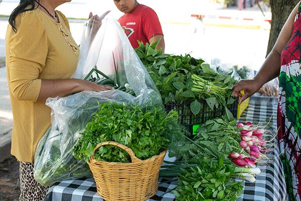 A smiling farmer holds several dark red long beans, just harvested from the field, against a stormy dark sky in […]