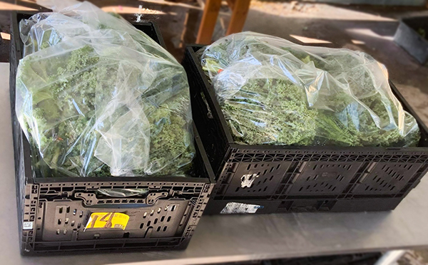 Kale in plastic bags for packed storage in black crates. From the Packing Greens for Wholesale How-to Guide.