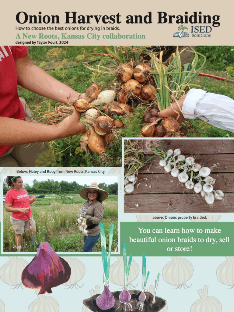 A detailed guidebook that describes how to harvest, dry, and process onions for sale as braids The guide includes a