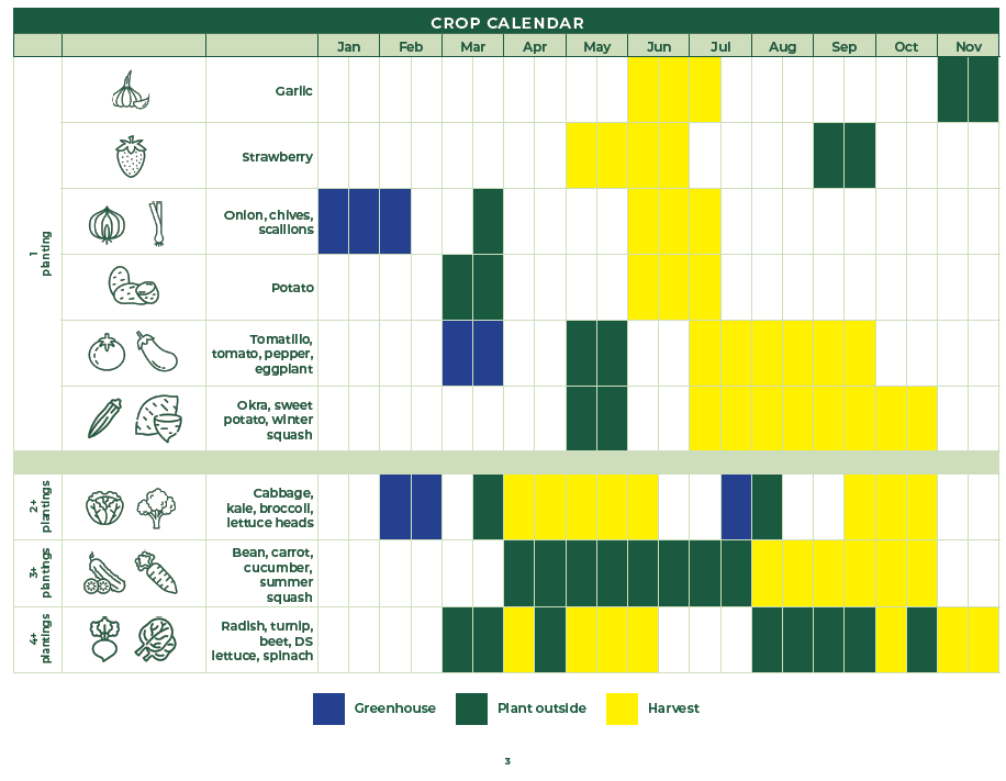 This calendar can be modified to provide an image based guide for starting, transplanting, and harvesting a variety of common crops. Created by New Roots, Cultivate KC. ...