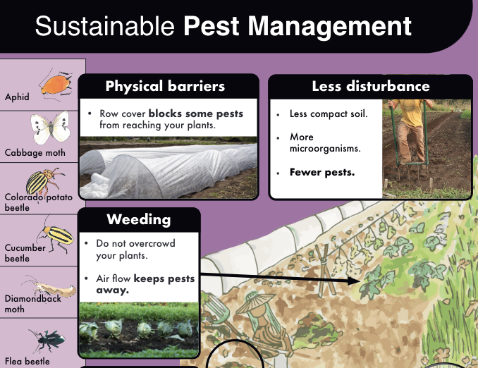 A guidebook to teach you how to manage pests in a sustainable way. It explains how soil health, plant diversity, and pest control are interconnected, and offers some solutions to help pest problems...