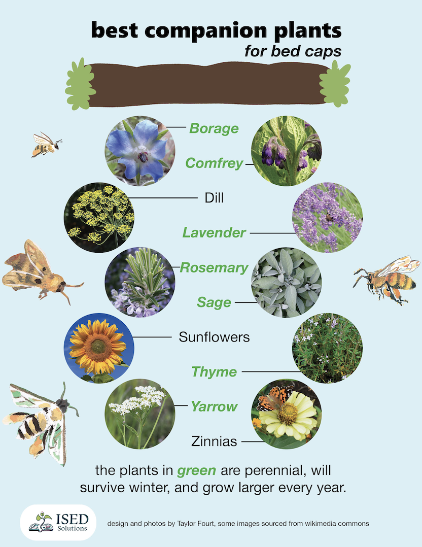 A handout showing ten plants that are great companion plants when placed on the end caps of rows. These plants grow easily in most regions of North America. A handout by Taylor Fourt. Thanks to Wikimedia Commons Photographers: Rosser1954, Xavierserratm, Johannes Maximilian, Argo Navis, Pimpinellus, Rjcastillo, Sankar 1995, Dennczak, 4028mdk09, Rasbak, Epibase, Dinkum, Fir0002, Petar43, Llez, Josve05a, Nova, EdsuRelated resources....